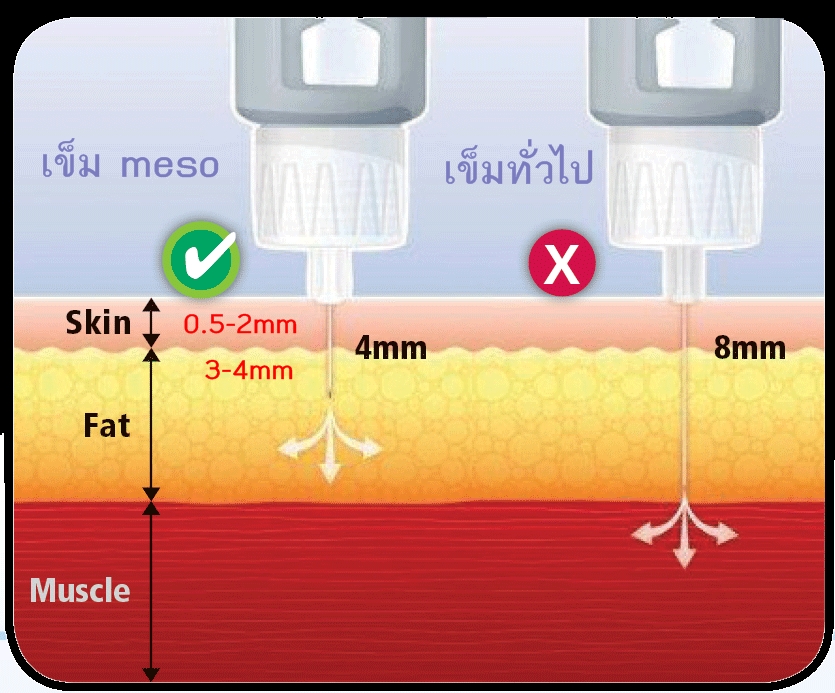 ยาว4มิล จะปักมิดเข็ม ก็ไม่เกินชั้นผิวหนัง ปลอดภัยสูง ฉีด ID SC SUBQ ได้หมด (ฉีดแฟตในส่วนที่ชั้นไขมันไม่หนา ได้)