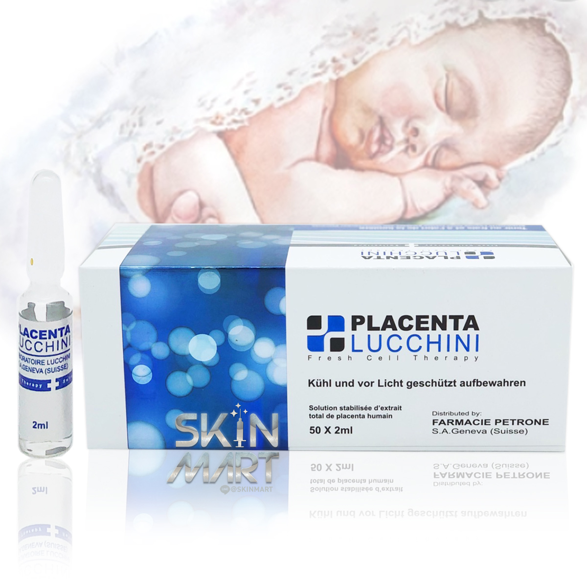 ใหม่จากประเทศสวิตเซอร์แลนด์ เป็นสารสกัดจากรกเด็กบริสุทธิ์ที่เข้มข้นกว่ารุ่นเดิม และออกแบบมาให้ฉีดเข้า เส้นได้อย่างมีประสิทธิภาพกว่ารุ่นเดิมจึงช่วยในการกระตุ้นเซลล์ต่างๆ ของร่างกายผลัดเซลล์ผิวและฟื้นฟูผิวหนังชั้นนอกได้อย่างรวดเร็วกว่ารุ่นเดิม เช่น รอยตีนกา จุดด่างดำ รอยคล้ำใต้ตา พร้อมปรับสีผิวให้สม่ำเสมอ ทำให้ผิวพรรณดูสดใส เปล่งปลั่ง ดูอ่อนเยาว์และมีชีวิตชีวา ช่วยกระตุ้นระบบการไหลเวียนโลหิตให้ดีขึ้น