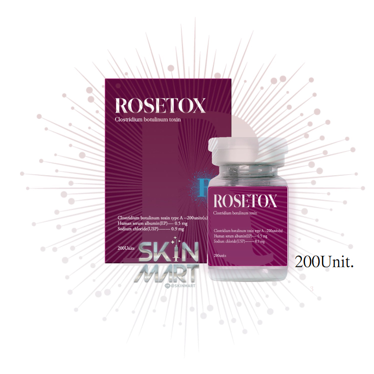 Botox RoseTox 100u-200u ยกกระชับกรอบหน้า ตัวยามีความPurifiedสูงมาก ฟิล์มบางๆ บรรจุแบบสูญญากาส ต้องผสม Nss ก่อนใช้งาน