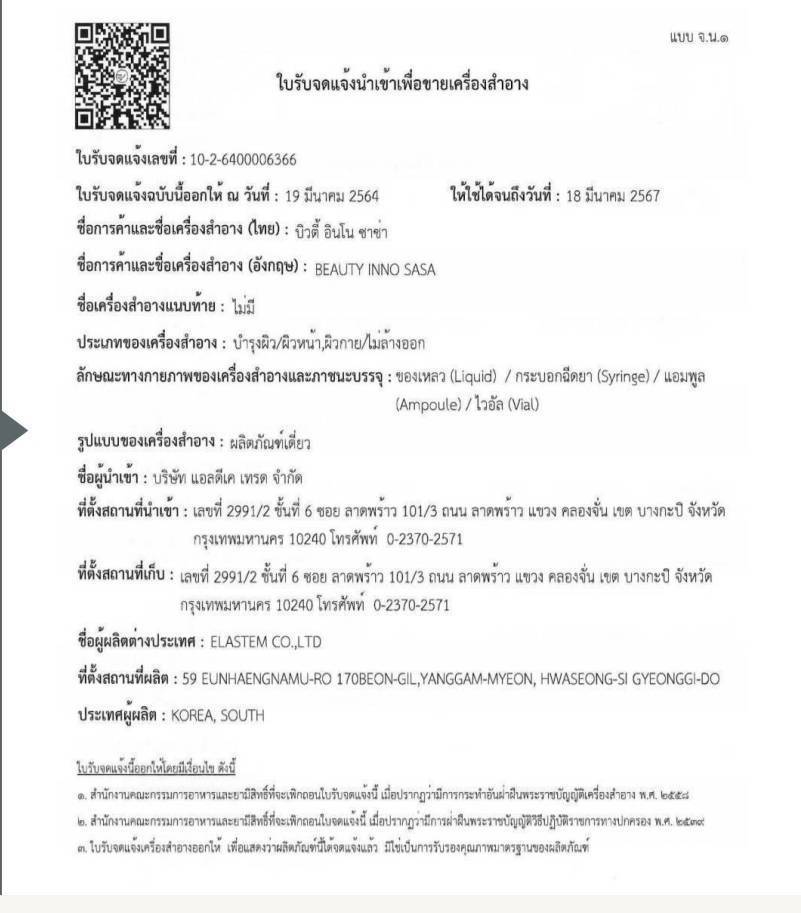 ㆍSASA มี Certificate of Analysis ทุกครั้ง lot การผลิต