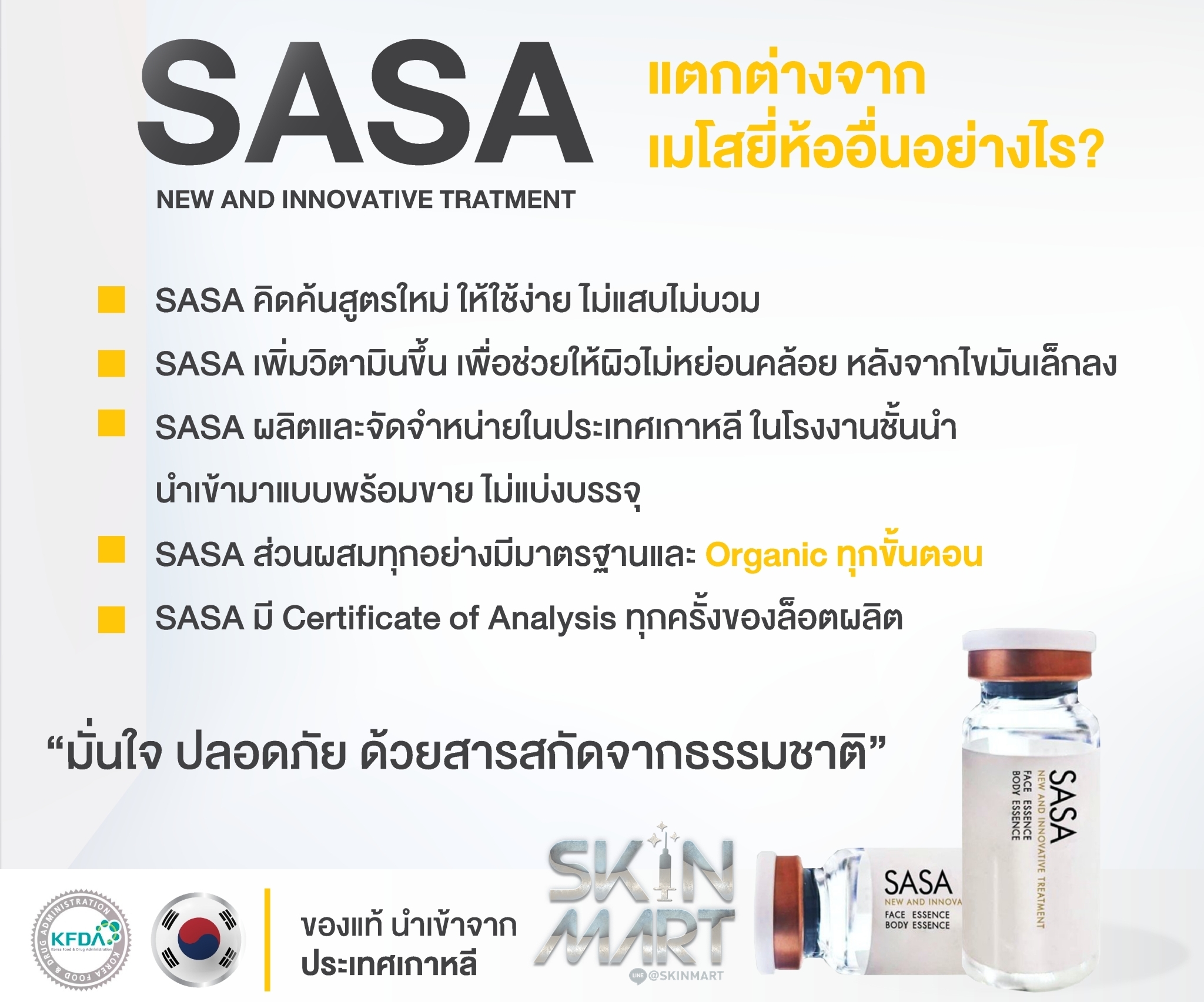 ㆍSASA ส่วนผสมทุกอย่างมีมาตรฐานและ Organic ทุกขั้นตอน